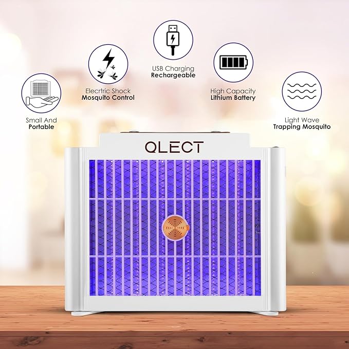 The QLECT Mosquito Killer Lamp comes with a 1200 mAh rechargeable battery that lasts up to 12 hours on a full charge.
