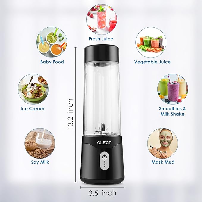 The QLECT Portable Blender features a 4000 mAh rechargeable battery, which provides enough power for multiple uses before needing a recharge.