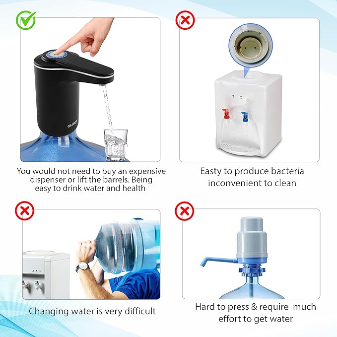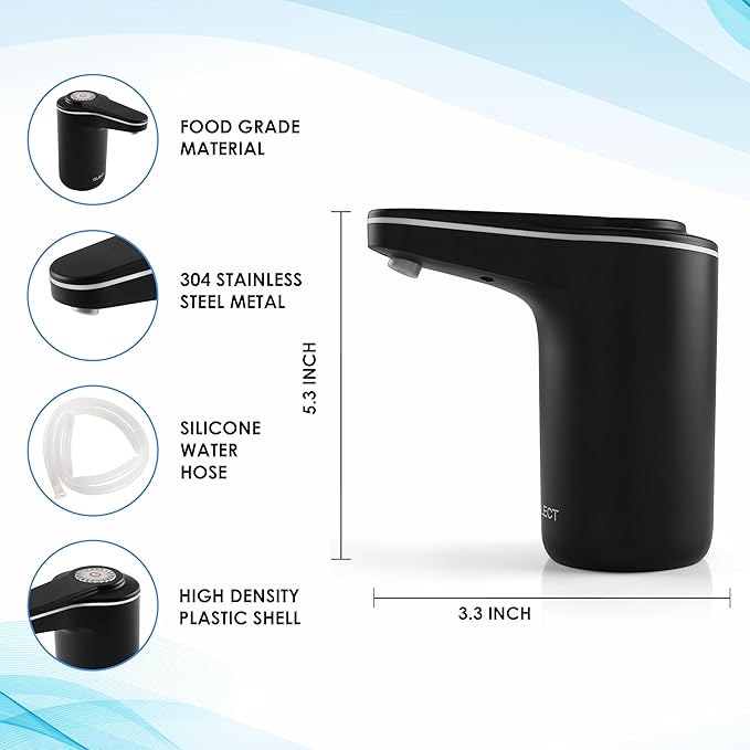 Easy One-Touch Operation: Simply press the button to dispense water, and press again to stop. Suitable for all ages with a 3.8W motor for efficient pumping.