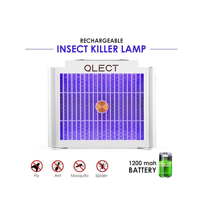 The QLECT Mosquito Killer Lamp comes with a 1200 mAh rechargeable battery that lasts up to 12 hours on a full charge.